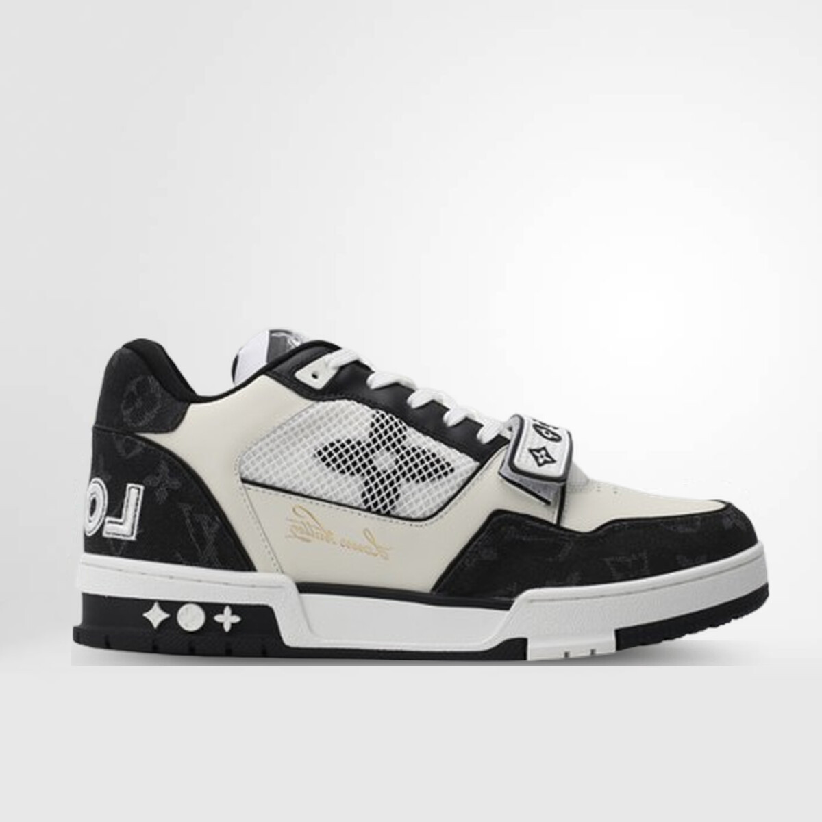 Das Bekenntnis von Louis Vuitton zur Handwerkskunst zeigt sich in den Details des Monogramm-Denims, das durch elegantes schwarzes Leder und eine weiße Sohle kontrastiert wird, die dem Design zeitlose Eleganz verleiht. Der Sneaker ziert ein Vuitton-Logo auf der Zunge, eine dezente, aber aussagekräftige Hommage an seine prestigeträchtige Herkunft. Das Gesamtergebnis ist eine harmonische Mischung aus Tradition und Trend, ideal für modebewusste Menschen mit einer Vorliebe für Markentradition.