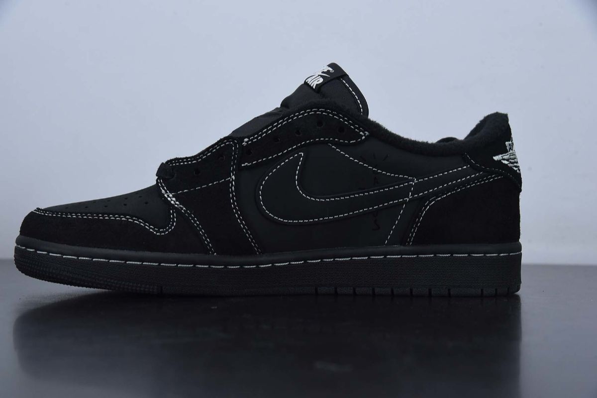 Das Modell kehrte mit seinem charakteristischen, nach hinten gerichteten Nike Swoosh zurück, jedoch mit einem neuen Kontrast-Stichdesign. Die komplett schwarzen Nubuk-Sneaker verfügen über ein Nike Air-Logo auf der Zunge und ein Air Jordan Wings-Logo auf der rechten Fersenlasche. Im Lieferumfang sind rote, schwarze und weiß-schwarze Schnürsenkel enthalten, und auf der Fersenlasche des linken Sneakers befindet sich eine gestickte Biene, die von Travis‘ Tochter Stormi inspiriert ist.